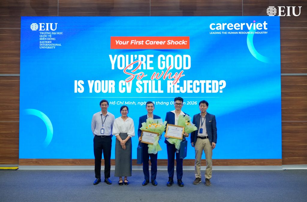 Ngày 28/01, Phòng Kết nối Cộng đồng Trường Đại học Quốc tế Miền Đông (EIU) đã phối hợp cùng CareerViet tổ chức workshop với chủ đề “Your first career shock: You’re Good – So Why is your CV still rejected?”. TS Hồ Nhựt Quang – Cố vấn HĐT/BGH, Giám đốc chương trình tài năng ngành […]
