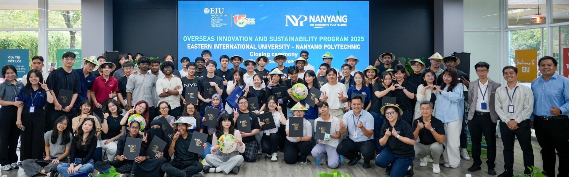 Khép lại OISP 2025, sinh viên Trường Đại học Quốc tế Miền Đông (EIU) và Trường Nanyang Polytechnic (Singapore)...