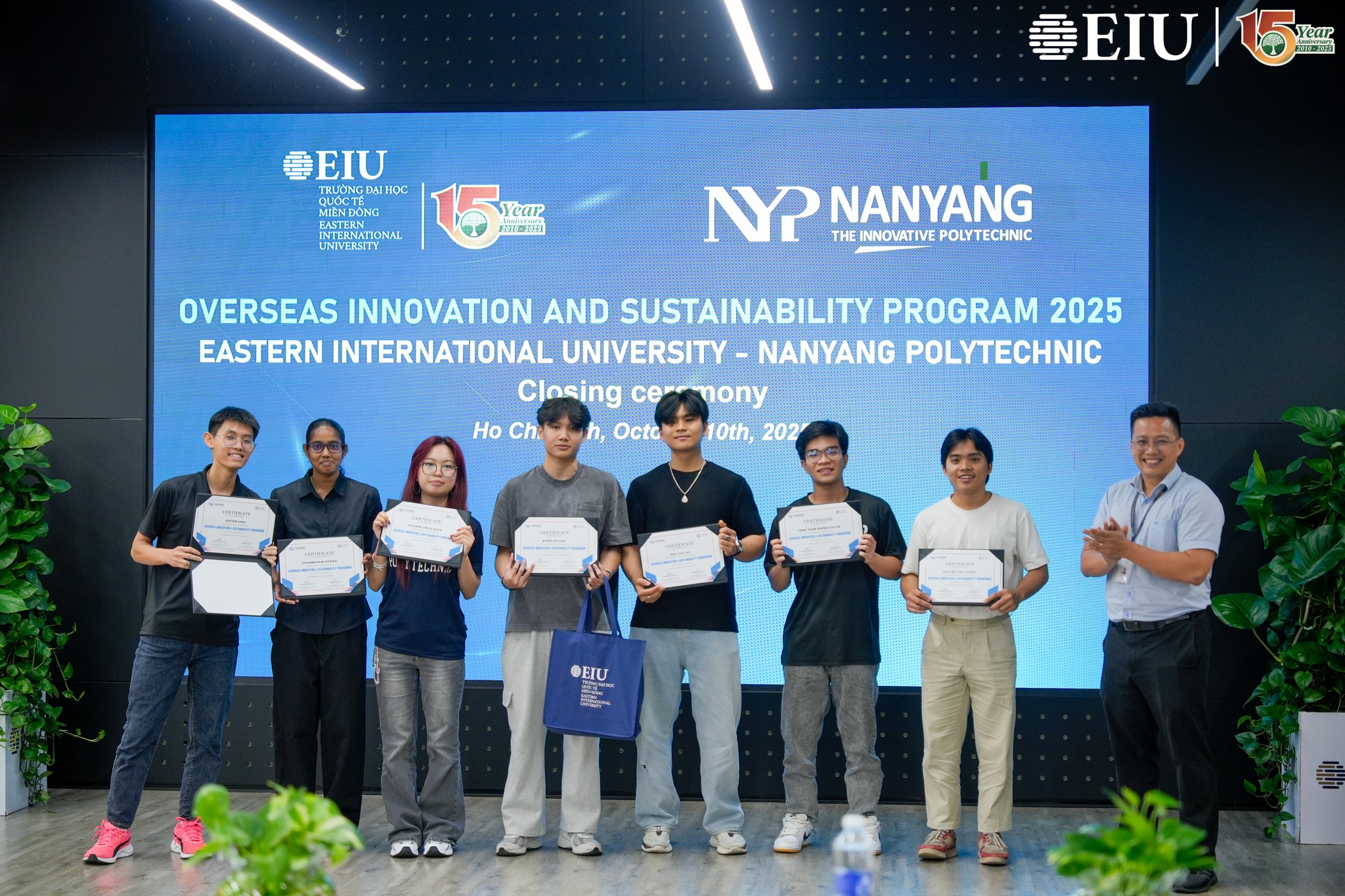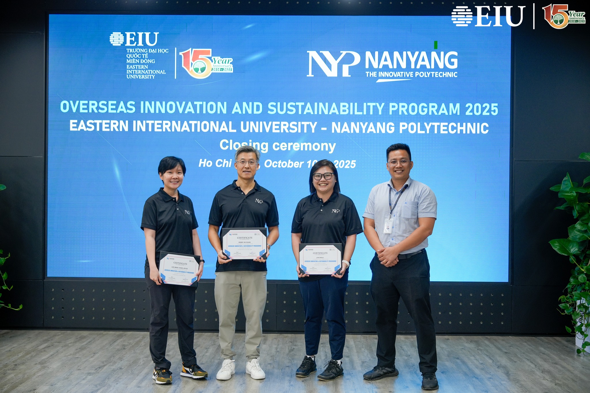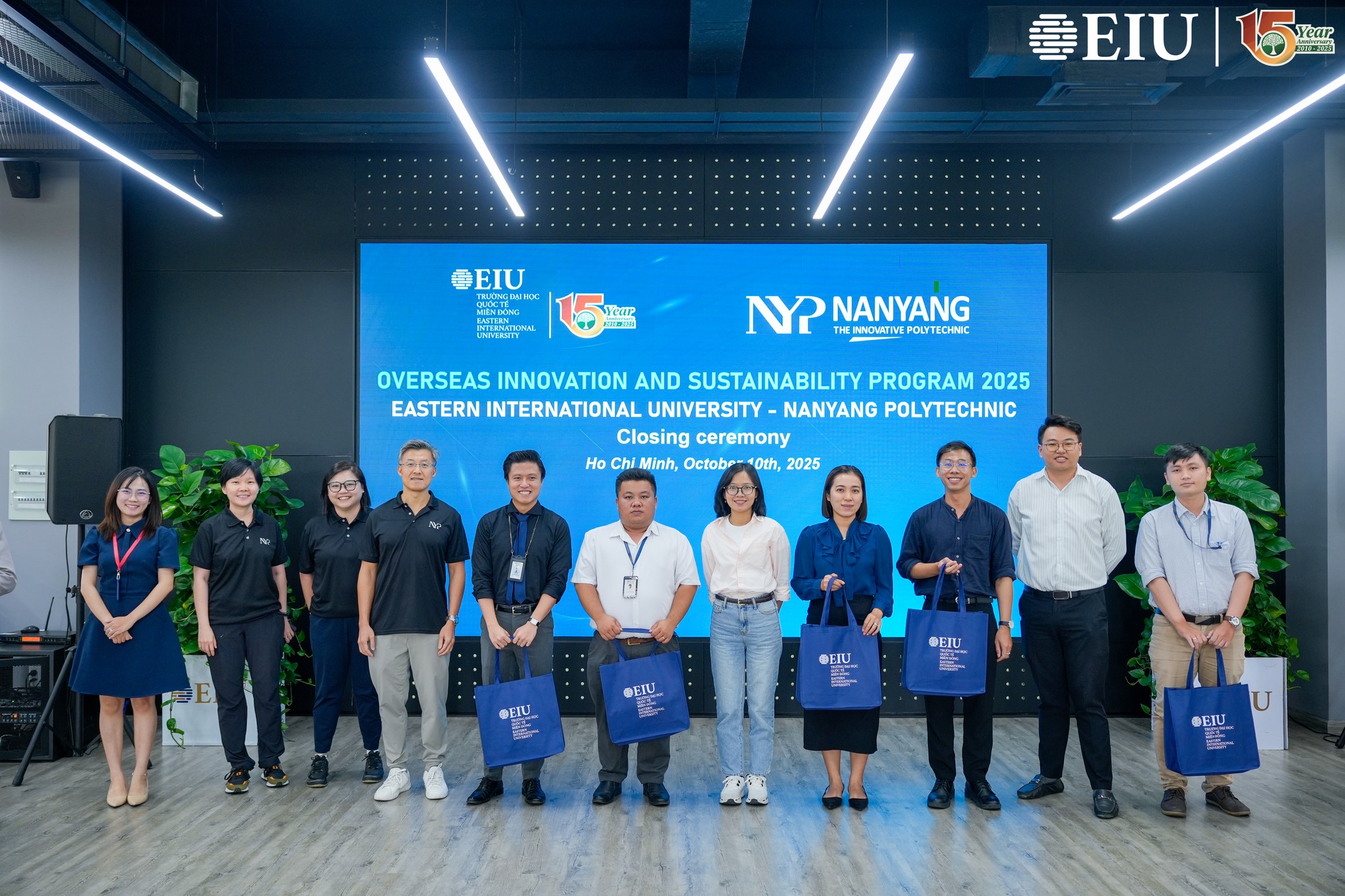 Khép lại OISP 2025, sinh viên Trường Đại học Quốc tế Miền Đông (EIU) và Trường Nanyang Polytechnic (Singapore) đã cùng nhau trải qua một hành trình học tập, trải nghiệm và sáng tạo đầy ý nghĩa.