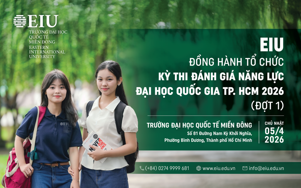 Ngày 05/4, Kỳ thi Đánh giá năng lực ĐHQG-HCM năm 2026 đợt 01 sẽ diễn ra. Theo đó, tại Tp. Hồ Chí Minh, Trường Đại học Quốc tế Miền Đông (EIU) sẽ đồng hành cùng ĐHQG-HCM tổ chức kỳ thi. Nhằm tạo điều kiện thuận lợi cho quý phụ huynh đưa đón con em đến […]