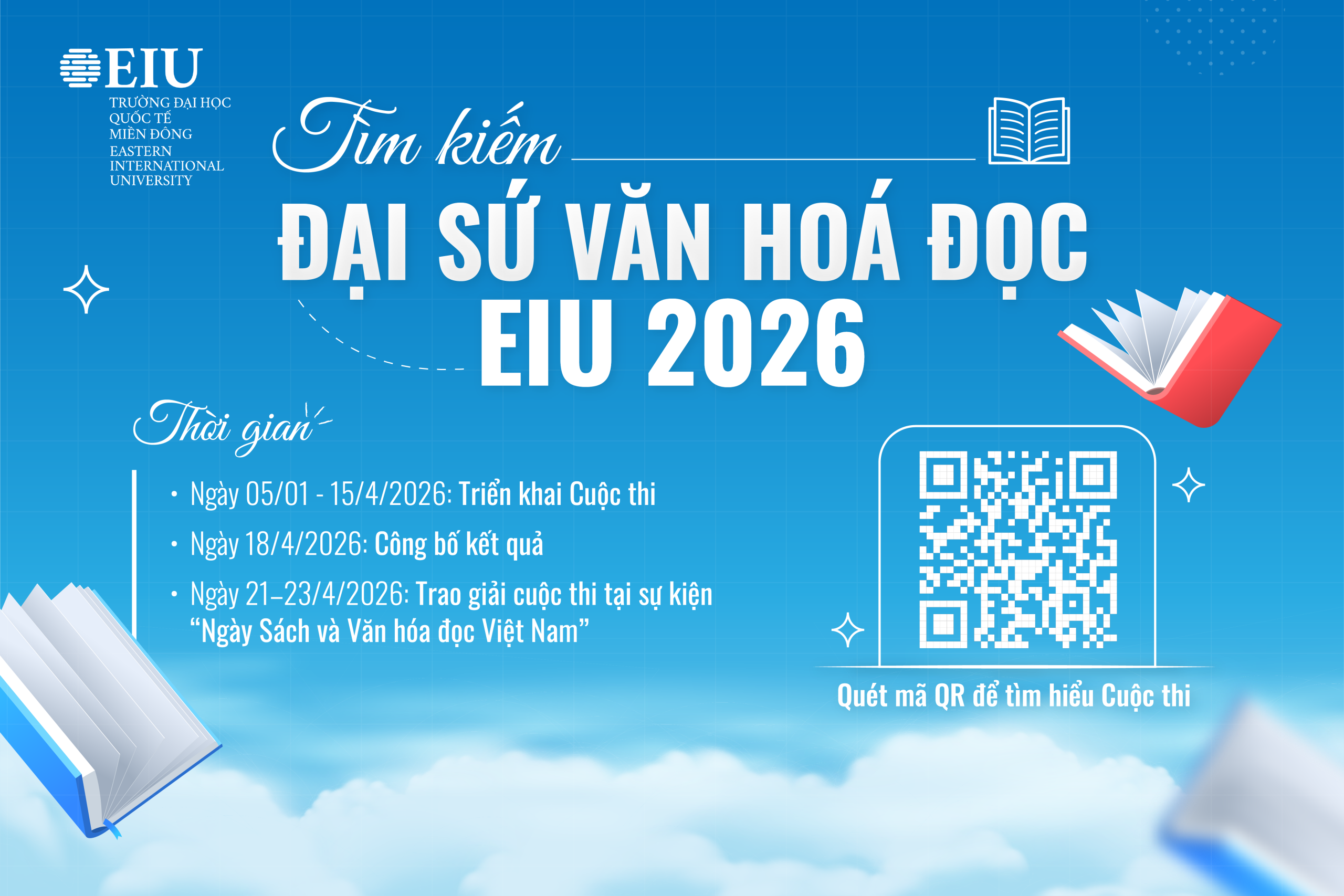 Nếu bạn đam mê đọc sách và muốn lan tỏa giá trị của văn hóa đọc, Chương trình “Tìm kiếm Đại sứ Văn hóa đọc EIU 2026” do Thư viện Trường Đại học Quốc tế Miền Đông tổ chức chính là sân chơi dành cho bạn!