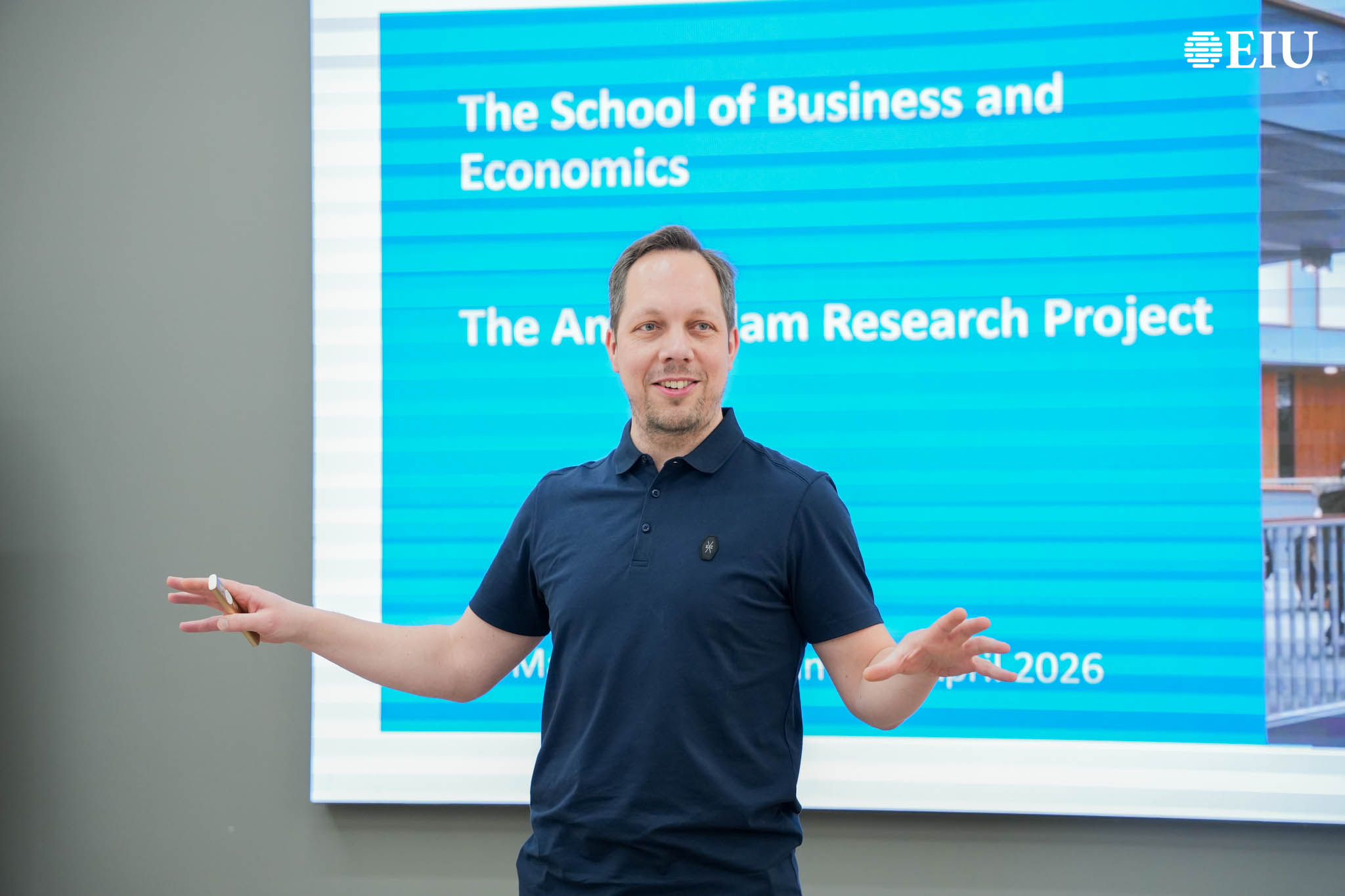 Trong khuôn khổ chương trình, TS Marc D. Bahlmann đã giới thiệu về Amsterdam Research Project (ARP). Thông qua dự án, sinh viên được rèn luyện kỹ năng nghiên cứu ứng dụng khi làm việc trực tiếp với các tổ chức, học cách chuyển hóa kết quả nghiên cứu thành đề xuất khả thi, đồng thời phát triển năng lực thu thập và phân tích dữ liệu trong bối cảnh các thị trường mới nổi. Chương trình còn góp phần mở rộng góc nhìn của sinh viên về hoạt động của các doanh nghiệp châu Âu trong môi trường quốc tế.