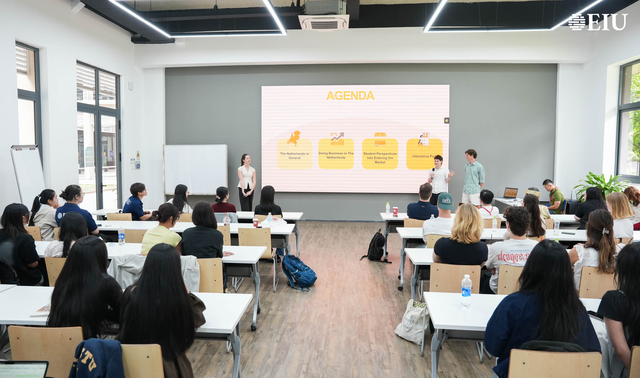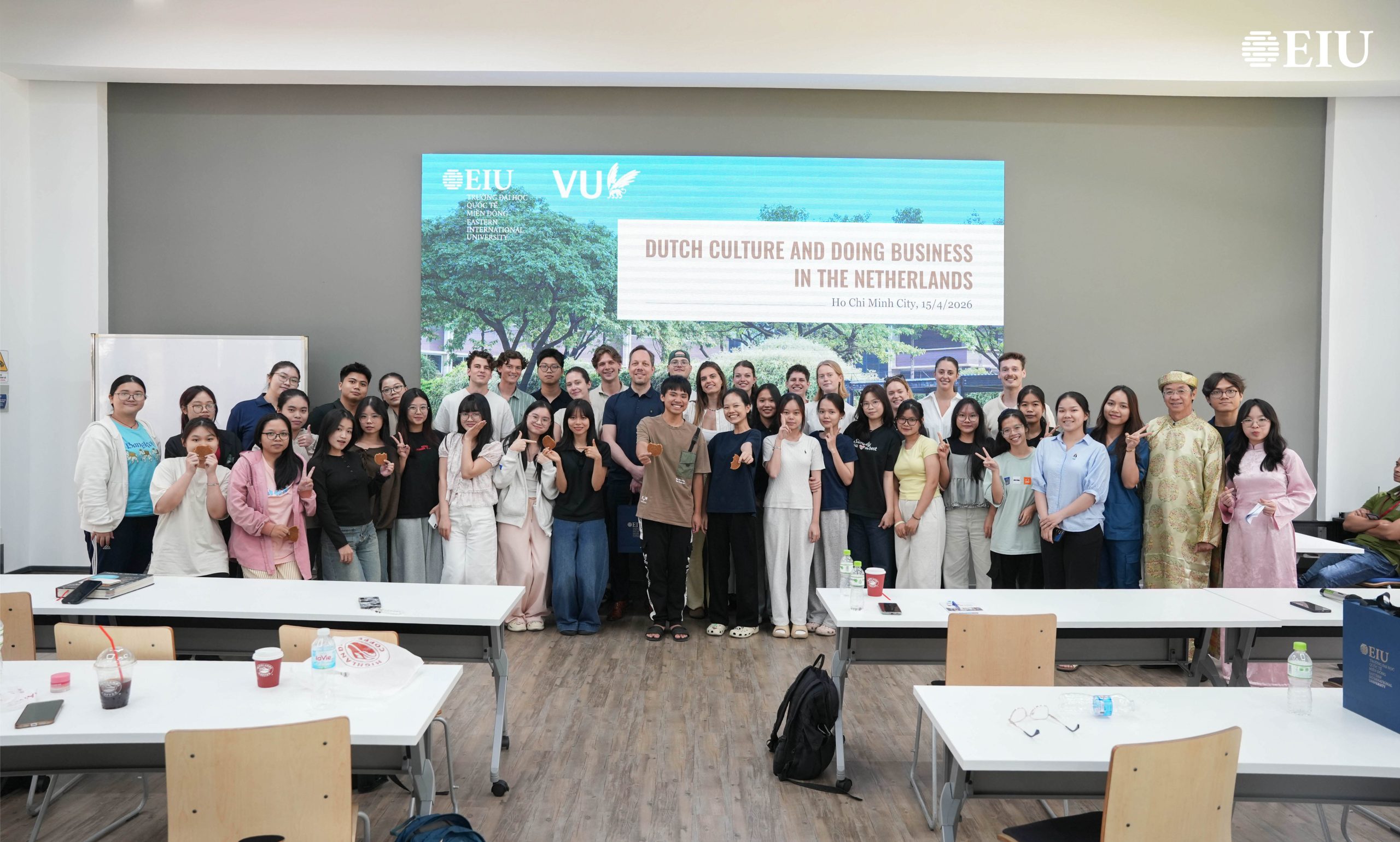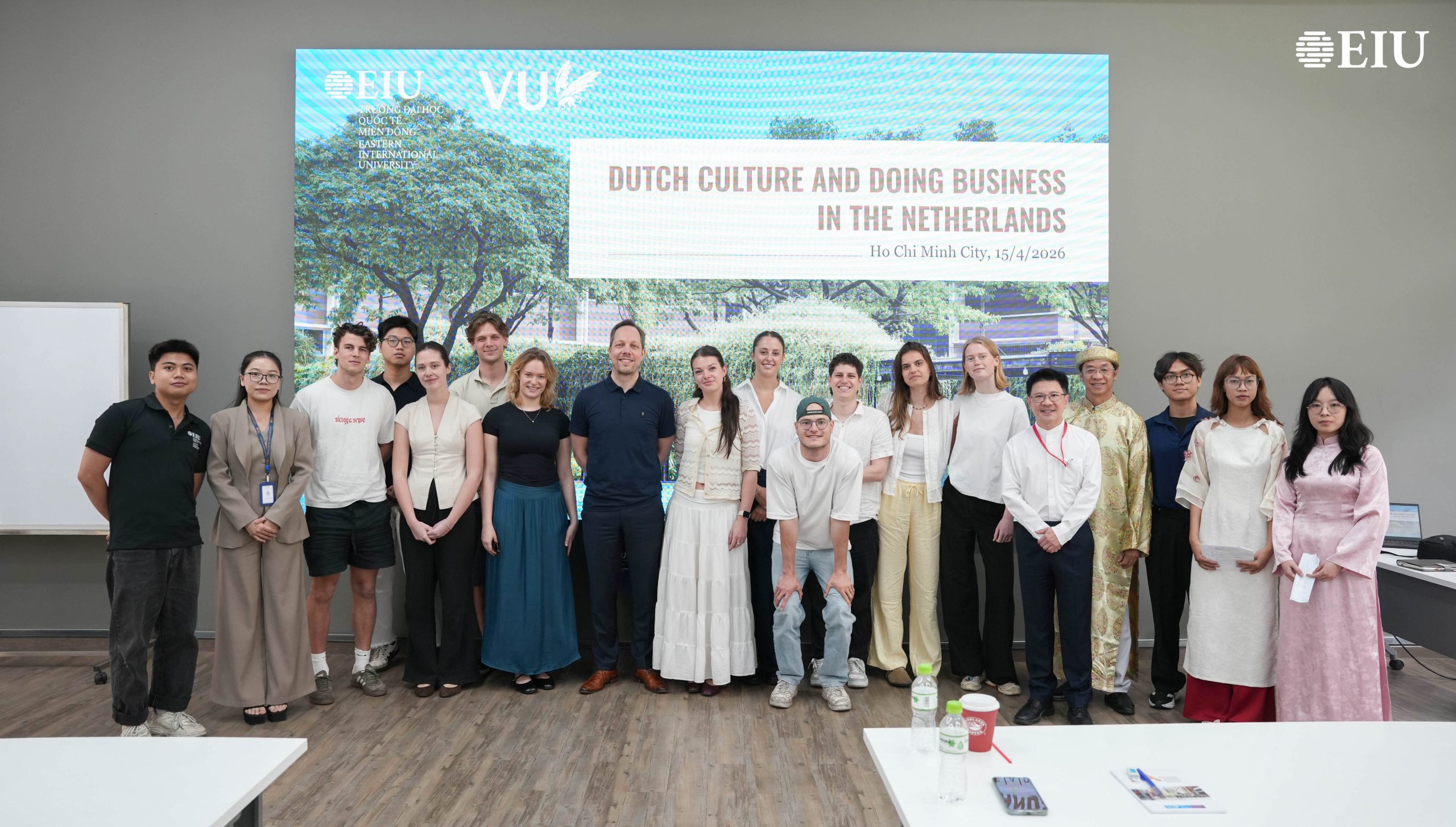Ngày 15/4, Trường Đại học Quốc tế Miền Đông (EIU) đã đón tiếp đoàn sinh viên đến từ Vrije Universiteit Amsterdam (VUA), Hà Lan trong khuôn khổ chương trình Fieldtrip tại Thành phố Hồ Chí Minh. Hoạt động nhằm tăng cường hợp tác quốc tế, đồng thời tạo điều kiện để sinh viên hai trường giao lưu học thuật và tìm hiểu văn hóa.