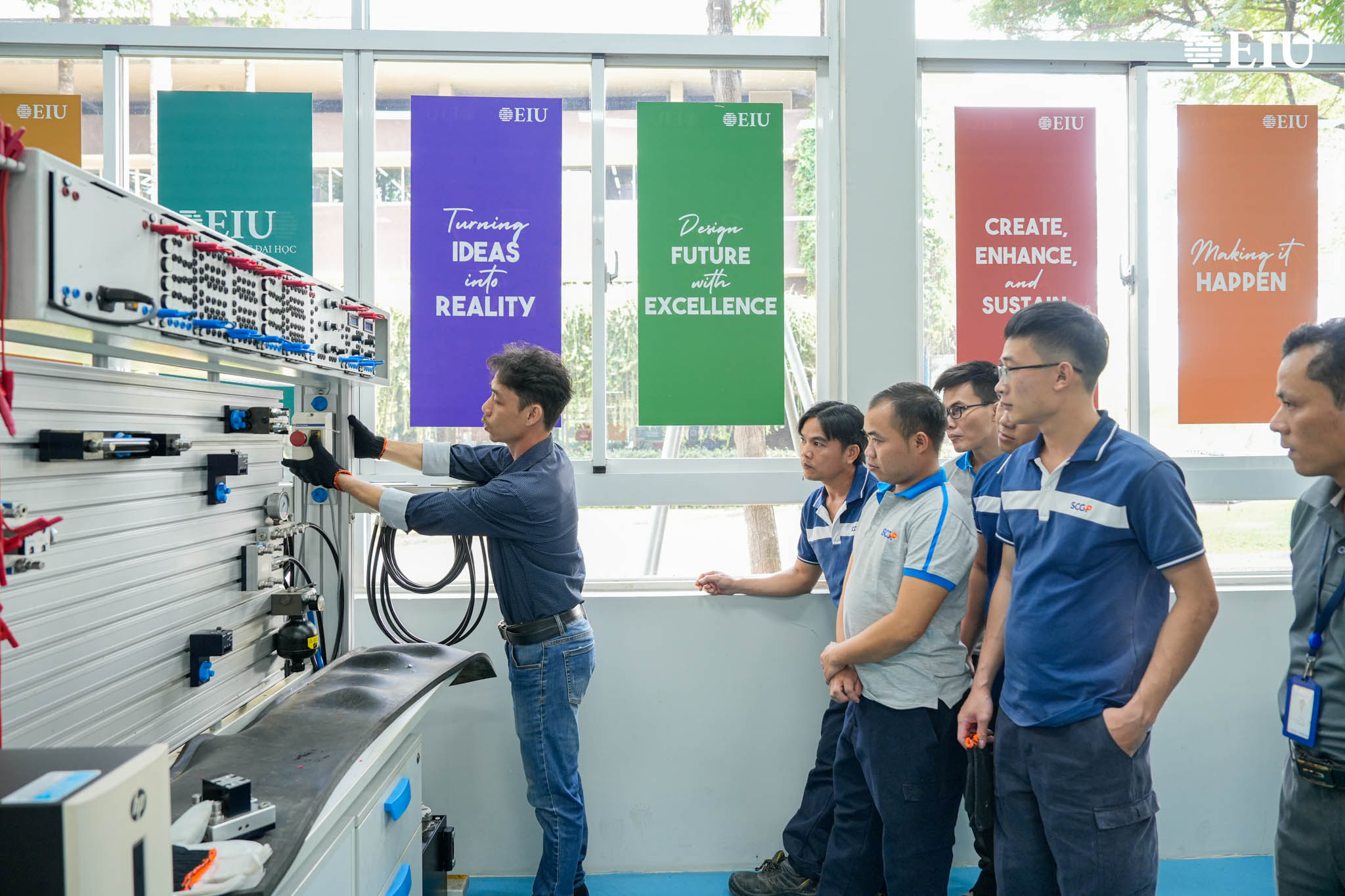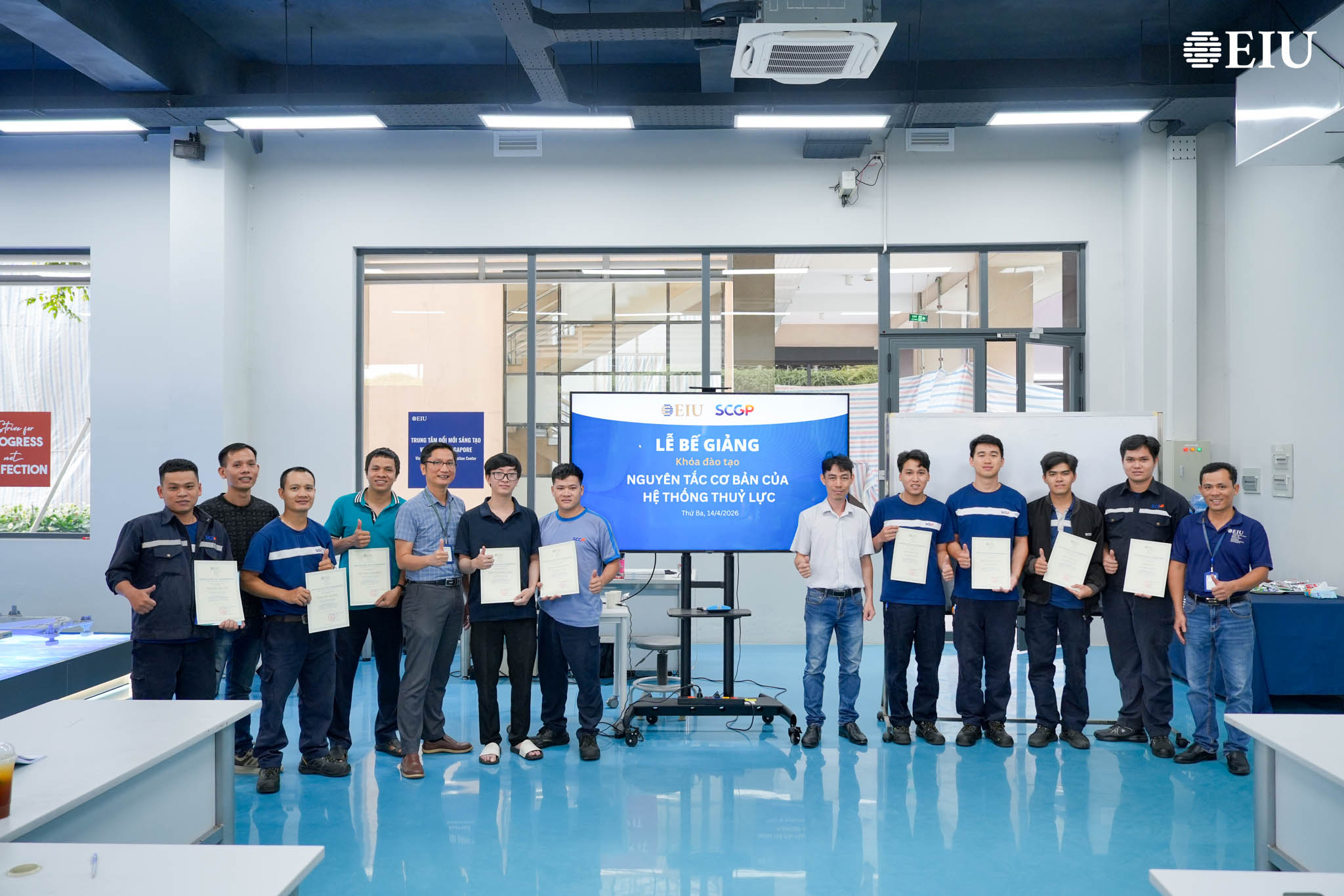 Cụ thể, trong hai ngày 13 – 14/4, khóa học “Nguyên tắc cơ bản của hệ thống thủy lực” do ThS Nguyễn Ngọc Hay và ThS Trịnh Ngọc Đức – Giảng viên Khoa Kỹ thuật EIU trực tiếp giảng dạy đã giúp học viên nắm vững nguyên lý hoạt động của hệ thống thủy lực, đồng thời nâng cao kỹ năng vận hành, bảo trì và xử lý sự cố máy móc trong môi trường sản xuất.