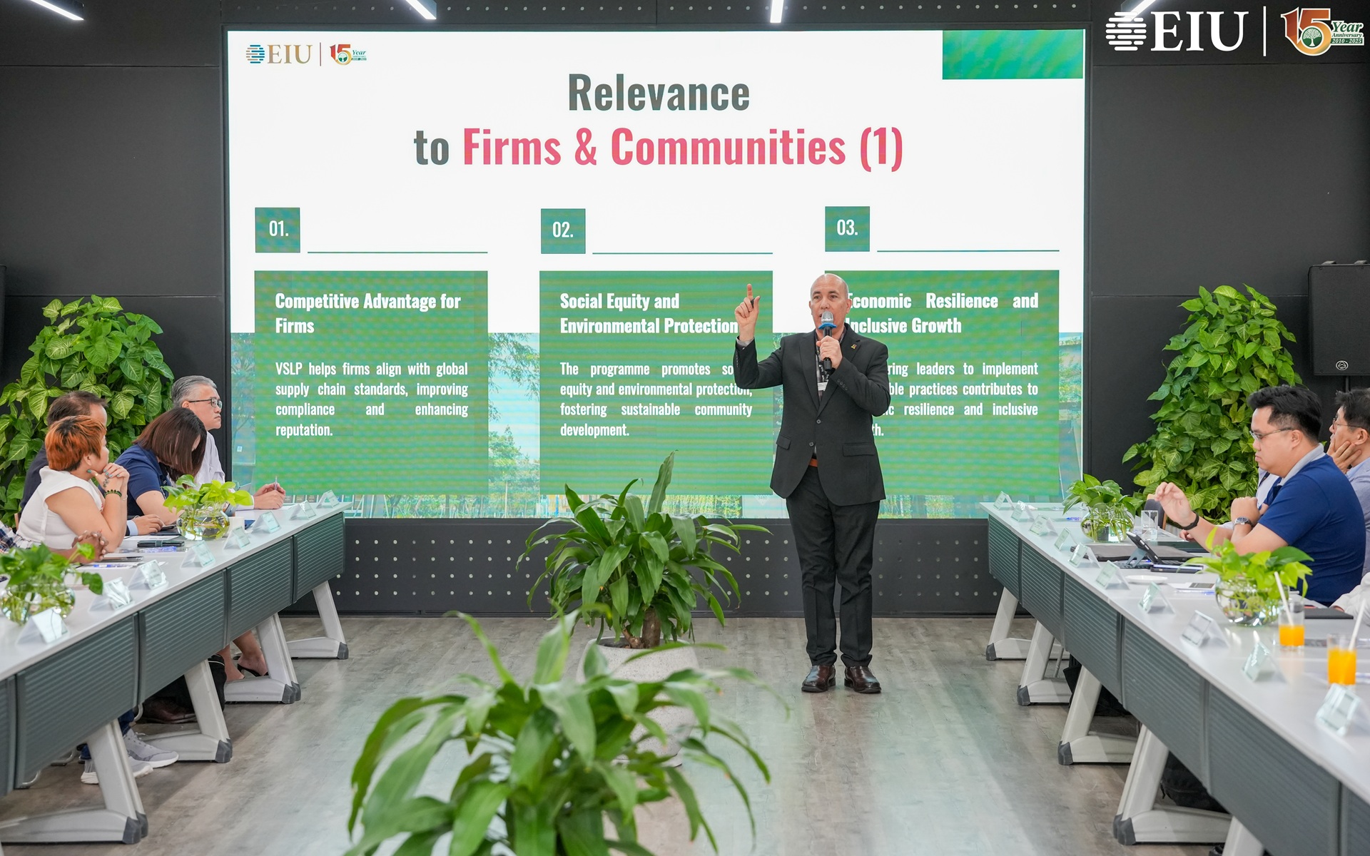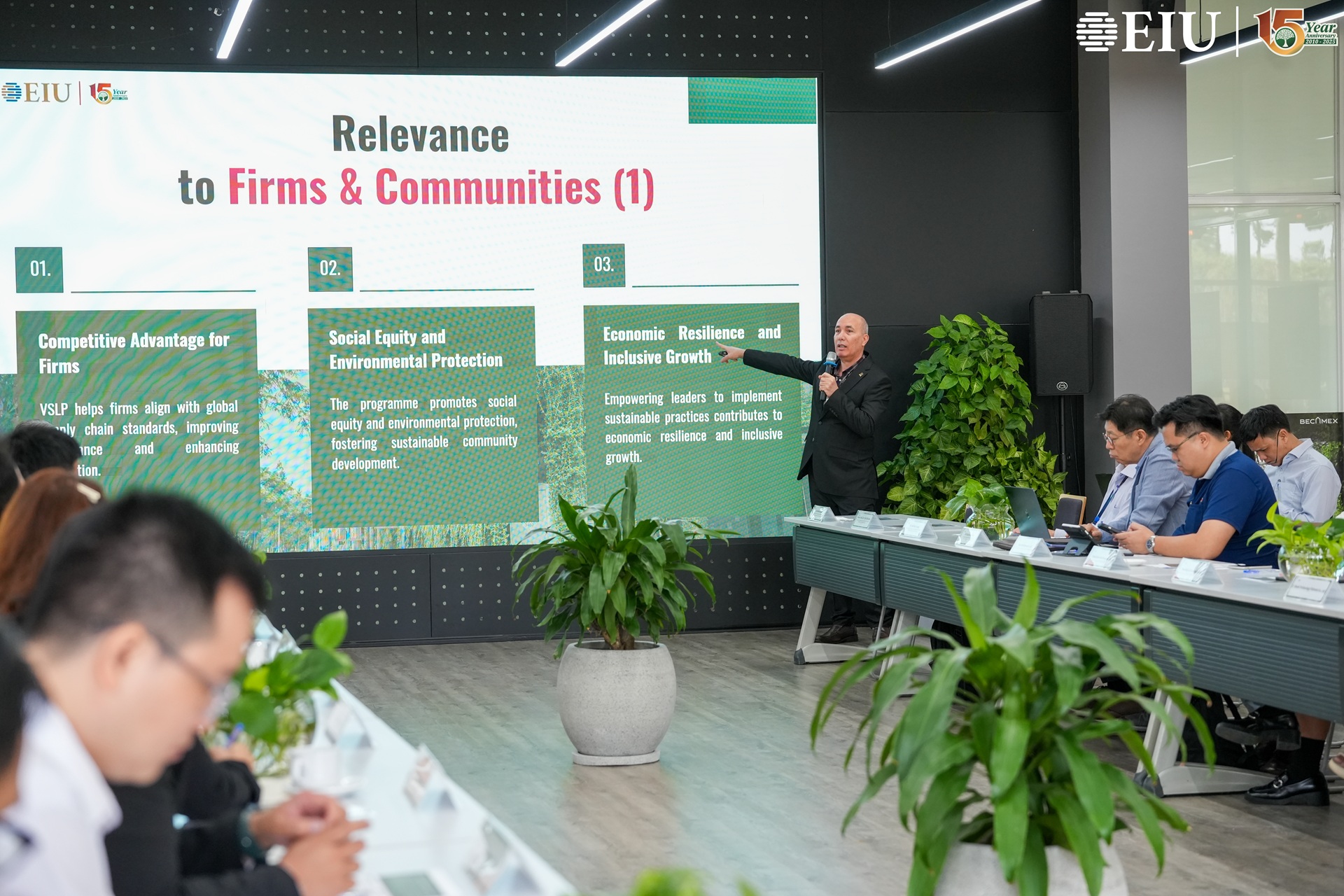 Thông qua chương trình, tư duy phát triển bền vững được lan tỏa rộng rãi tới cộng đồng doanh nghiệp, đồng thời khẳng định vai trò của EIU như một cầu nối tri thức giữa giảng đường đại học và thực tiễn sản xuất và kinh doanh, thúc đẩy hợp tác, chia sẻ kinh nghiệm và định hướng hành động thiết thực. Cụ thể, hoạt động là bước khởi đầu cho việc giới thiệu chường trình VSLP cho đối tượng người học là lãnh đạo doanh nghiệp, nhà quản lý… dự kiến sẽ khai giảng trong tháng 4/2026.