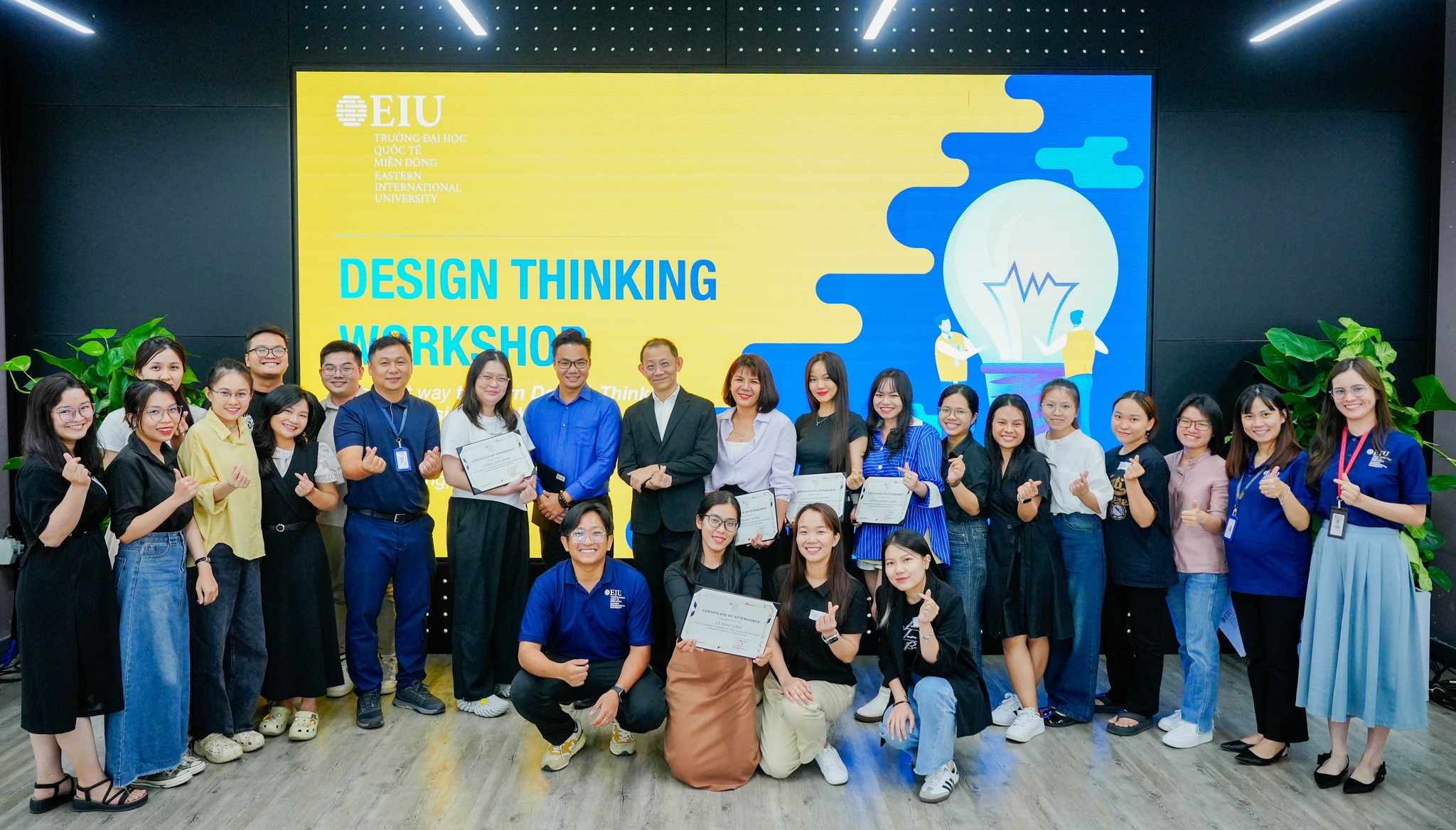 Vào ngày 25/5/2024, EIU đã tổ chức thành công Workshop “Design Thinking – Tư duy Thiết kế” dưới sự dẫn dắt của Chuyên gia giàu kinh nghiệm – Ông Barnabas Chiang. Lớp được tổ chức với hơn 30 học viên là các cựu sinh viên và các đối tác doanh nghiệp đang công tác tại các công ty như Becamex Tokyu, Ashley Furniture, Wanek Furniture, Tecan-Pmas, Detmold Packaging, XP Power, Ecco, Rohto Mentholatum Vietnam, Shopee, Crocs, Nitto Denko, Cicor Vietnam, Công ty CP Đào tạo bóng đá trẻ Becamex Bình Dương, Public Bank và một số bạn đang làm kinh doanh tự do đã cùng tham gia.