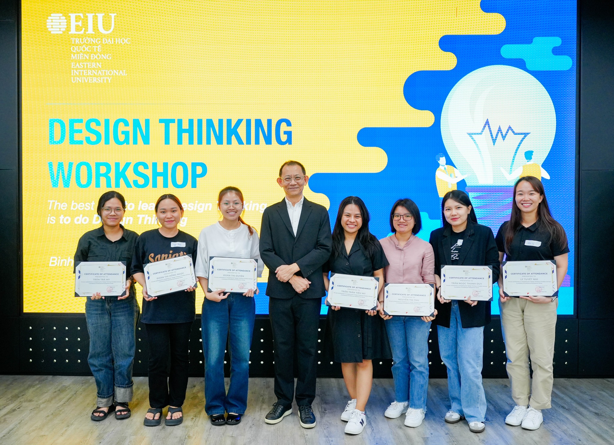 Vào ngày 25/5/2024, EIU đã tổ chức thành công Workshop “Design Thinking – Tư duy Thiết kế” dưới sự dẫn dắt của Chuyên gia giàu kinh nghiệm – Ông Barnabas Chiang. Lớp được tổ chức với hơn 30 học viên là các cựu sinh viên và các đối tác doanh nghiệp đang công tác tại các công ty như Becamex Tokyu, Ashley Furniture, Wanek Furniture, Tecan-Pmas, Detmold Packaging, XP Power, Ecco, Rohto Mentholatum Vietnam, Shopee, Crocs, Nitto Denko, Cicor Vietnam, Công ty CP Đào tạo bóng đá trẻ Becamex Bình Dương, Public Bank và một số bạn đang làm kinh doanh tự do đã cùng tham gia.