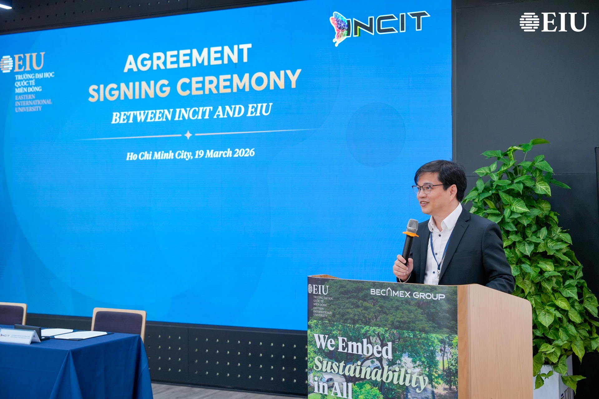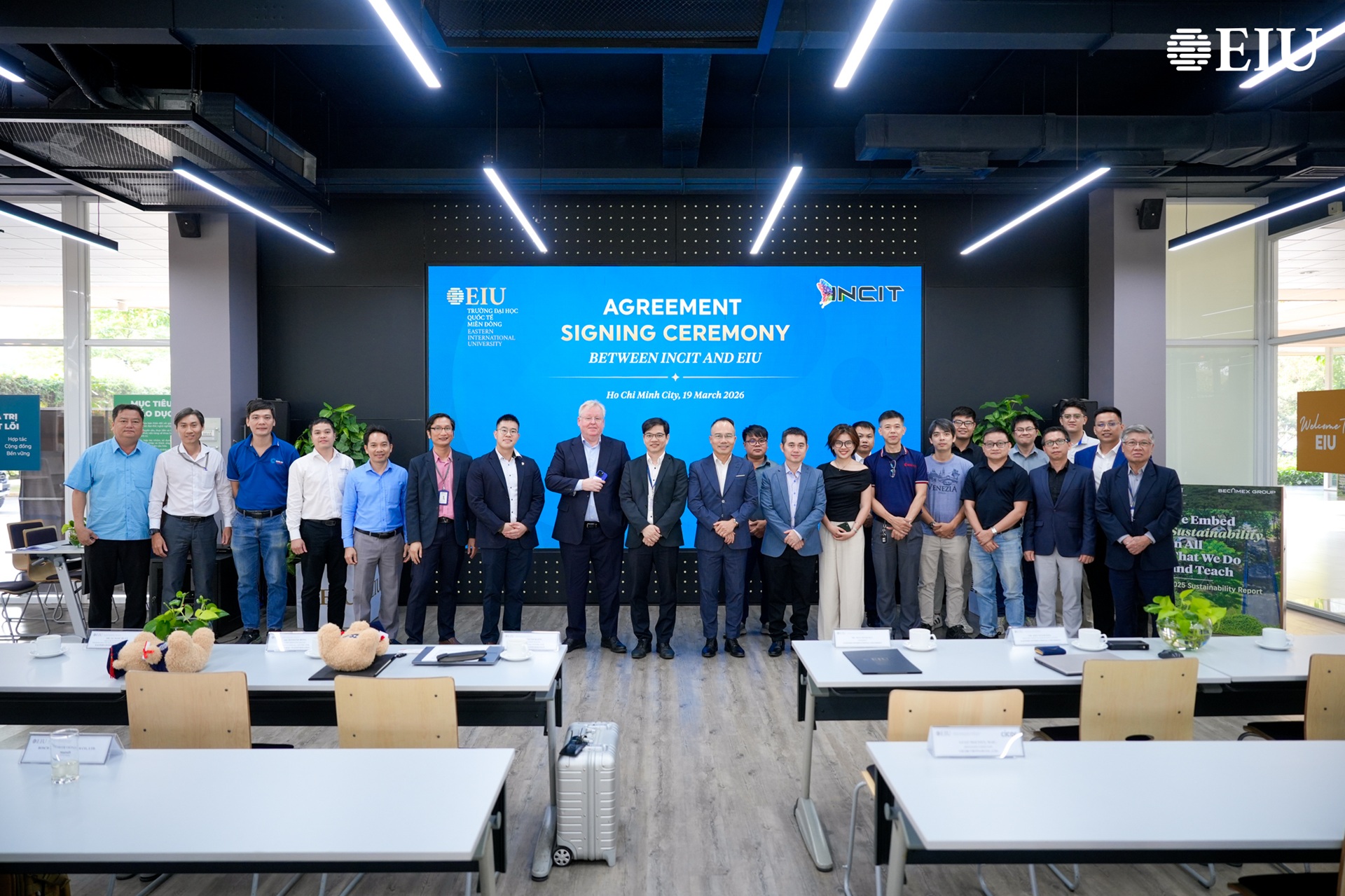 Ngày 19/3, Trường Đại học Quốc tế Miền Đông (EIU) ký kết thỏa thuận hợp tác với International Center for industrial Transformation (INCIT), mở rộng mạng lưới hợp tác quốc tế và tăng cường vai trò trong lĩnh vực chuyển đổi công nghiệp.