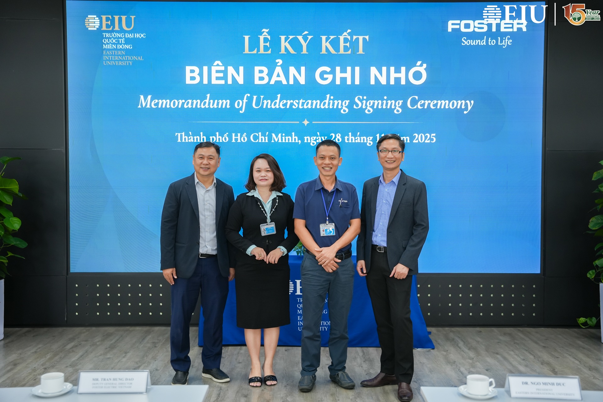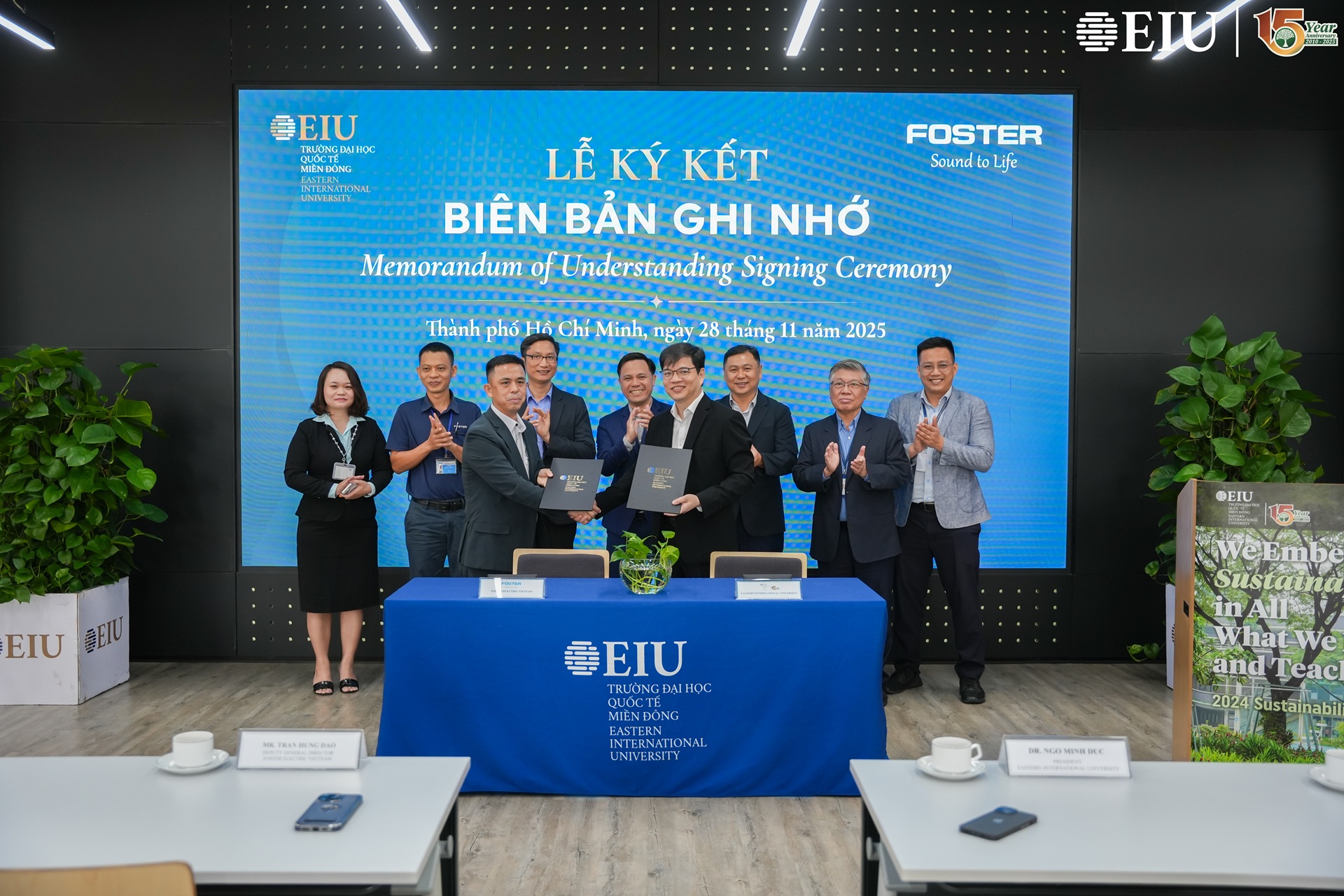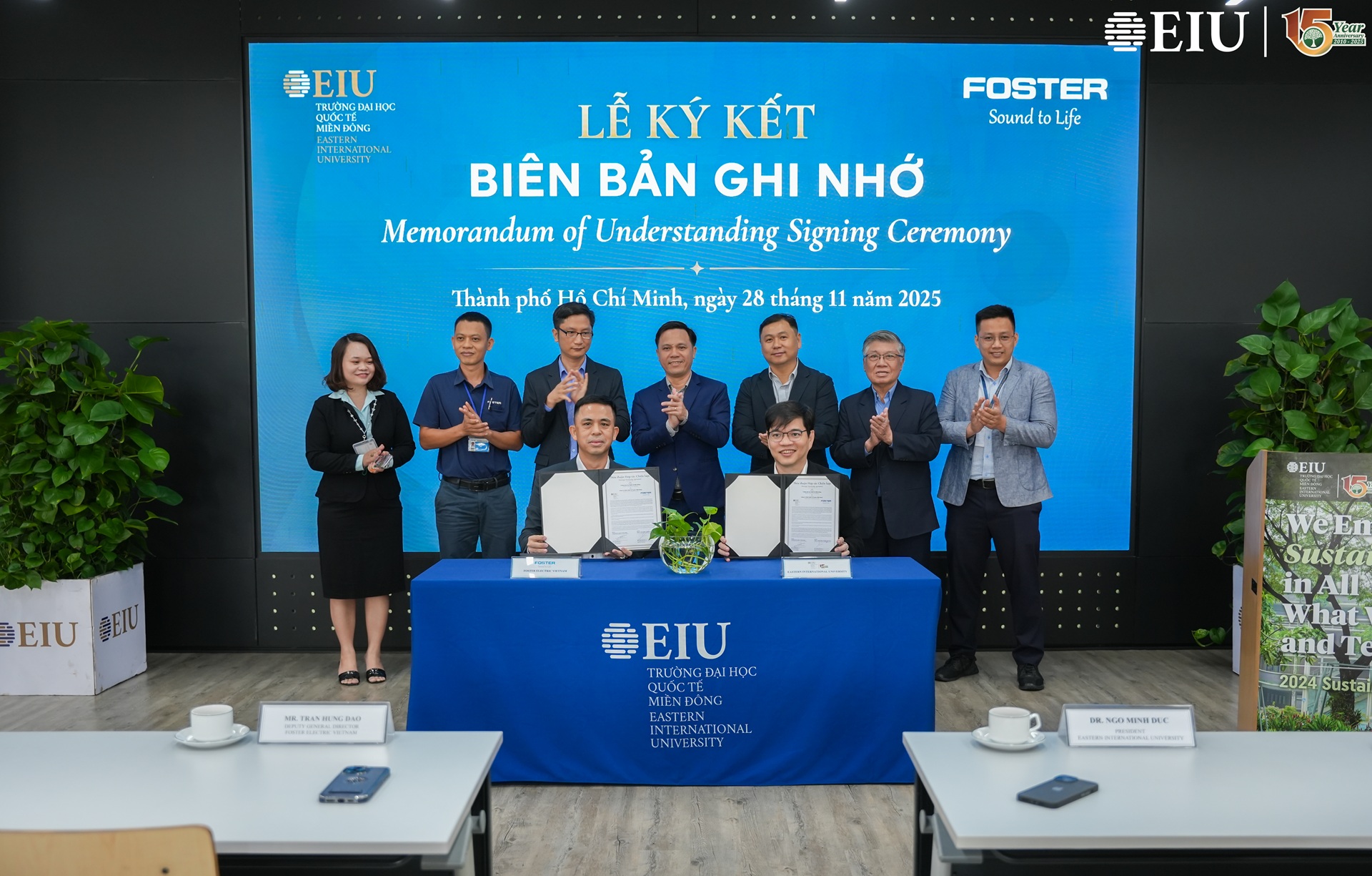 Ngày 28/11, Trường Đại học Quốc tế Miền Đông (EIU) đã tổ chức lễ ký kết Biên bản ghi nhớ hợp tác (MOU) với Công ty TNHH Điện tử Foster Việt Nam (Foster Việt Nam). Qua đây mở ra một giai đoạn hợp tác mới hướng đến phát triển nguồn nhân lực chất lượng cao và đẩy mạnh các hoạt động nghiên cứu, đổi mới sáng tạo.