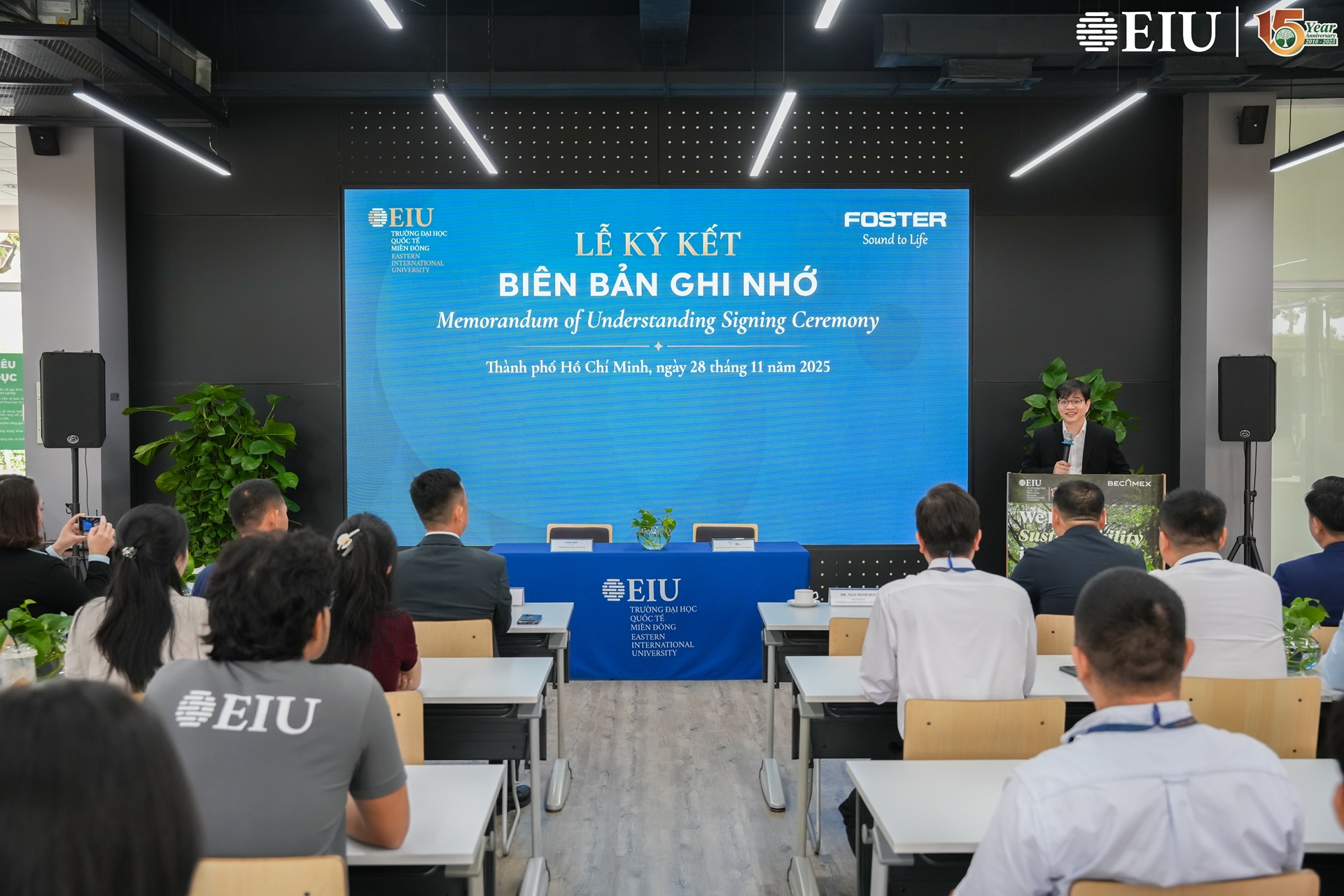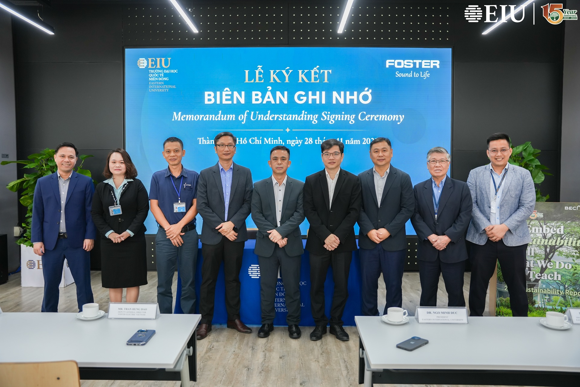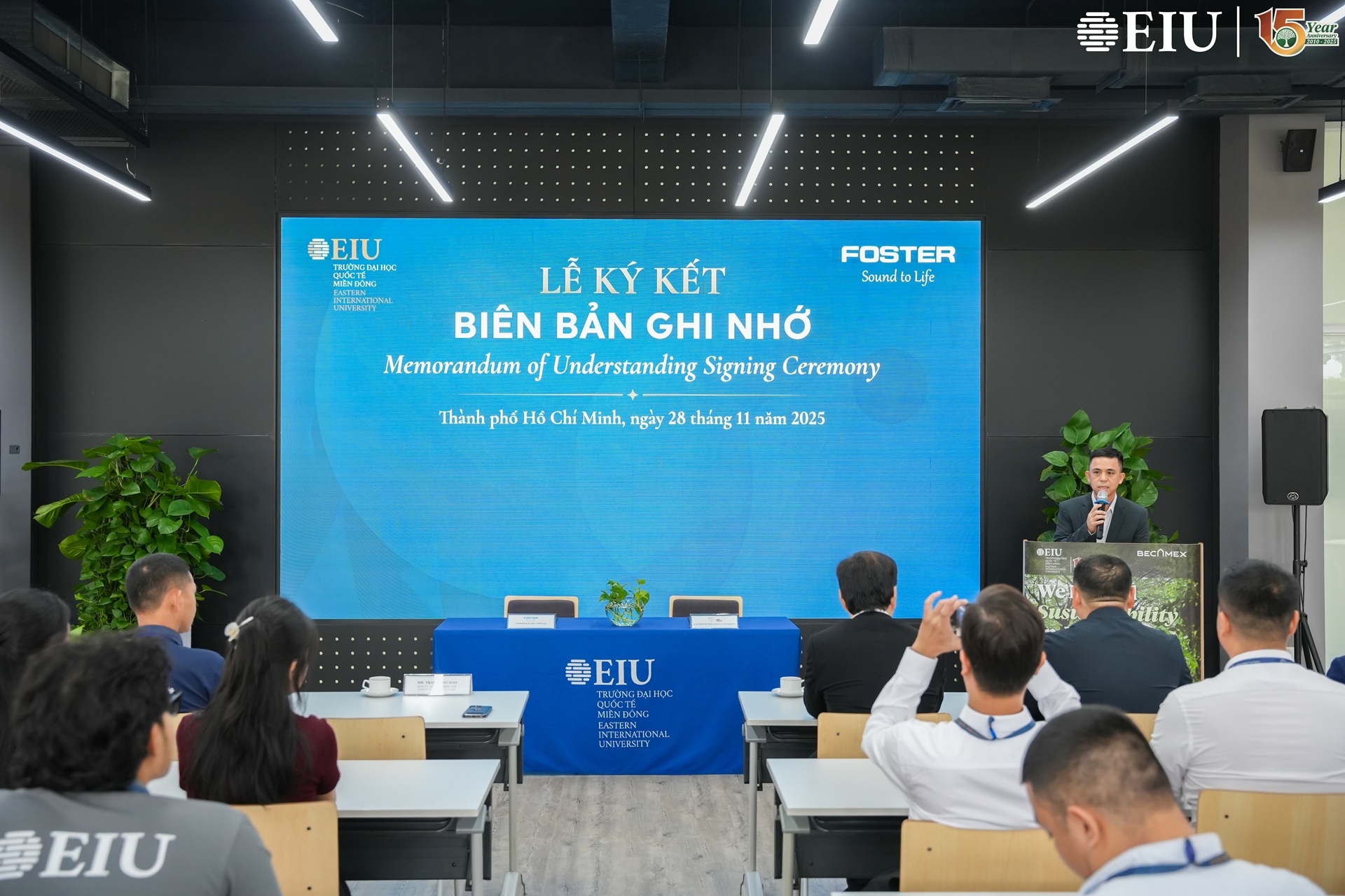 Ngày 28/11, Trường Đại học Quốc tế Miền Đông (EIU) đã tổ chức lễ ký kết Biên bản ghi nhớ hợp tác (MOU) với Công ty TNHH Điện tử Foster Việt Nam (Foster Việt Nam). Qua đây mở ra một giai đoạn hợp tác mới hướng đến phát triển nguồn nhân lực chất lượng cao và đẩy mạnh các hoạt động nghiên cứu, đổi mới sáng tạo.