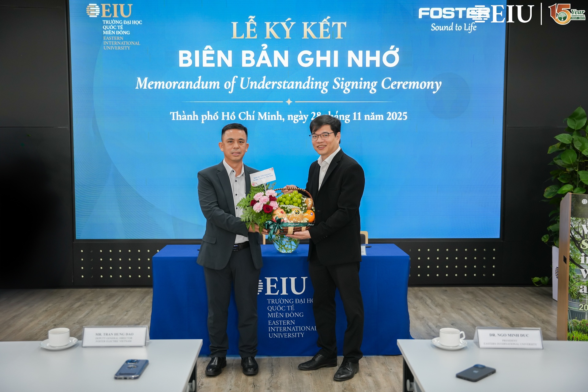Phát biểu tại chương trình, TS Ngô Minh Đức – Hiệu trưởng EIU nhấn mạnh rằng lễ ký kết lần này được xây dựng trên nền tảng các hoạt động phối hợp hiệu quả giữa hai đơn vị trong thời gian qua. MOU sẽ là bước khởi đầu quan trọng, tạo tiền đề để EIU và Foster Việt Nam triển khai sâu rộng hơn các chương trình hợp tác trong lĩnh vực nghiên cứu khoa học, chuyển giao công nghệ và đặc biệt là phát triển cơ hội thực tập, việc làm cho sinh viên.