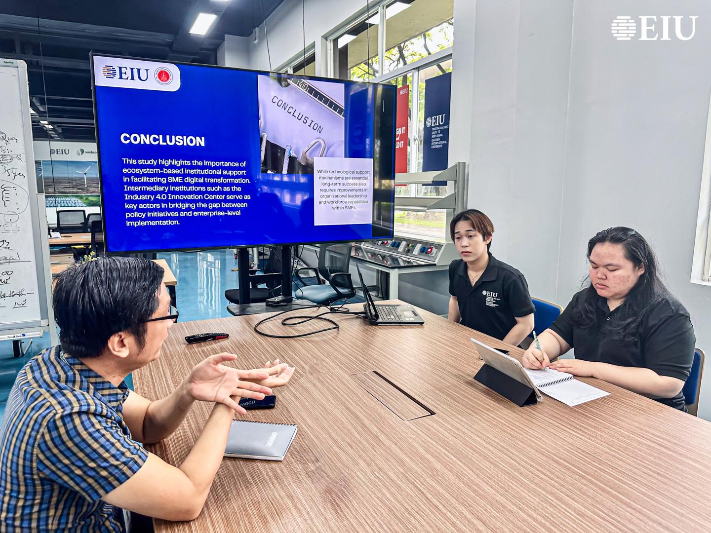 Chương trình thực tập tại IIC 4.0 không chỉ mang lại trải nghiệm thực tiễn trong môi trường làm việc chuyên nghiệp, giúp sinh viên tiếp cận các vấn đề về quản trị, chính sách công và chuyển đổi số trong bối cảnh phát triển Công nghiệp 4.0, mà còn góp phần tăng cường giao lưu học thuật và mở rộng hợp tác giữa EIU với các đối tác quốc tế.