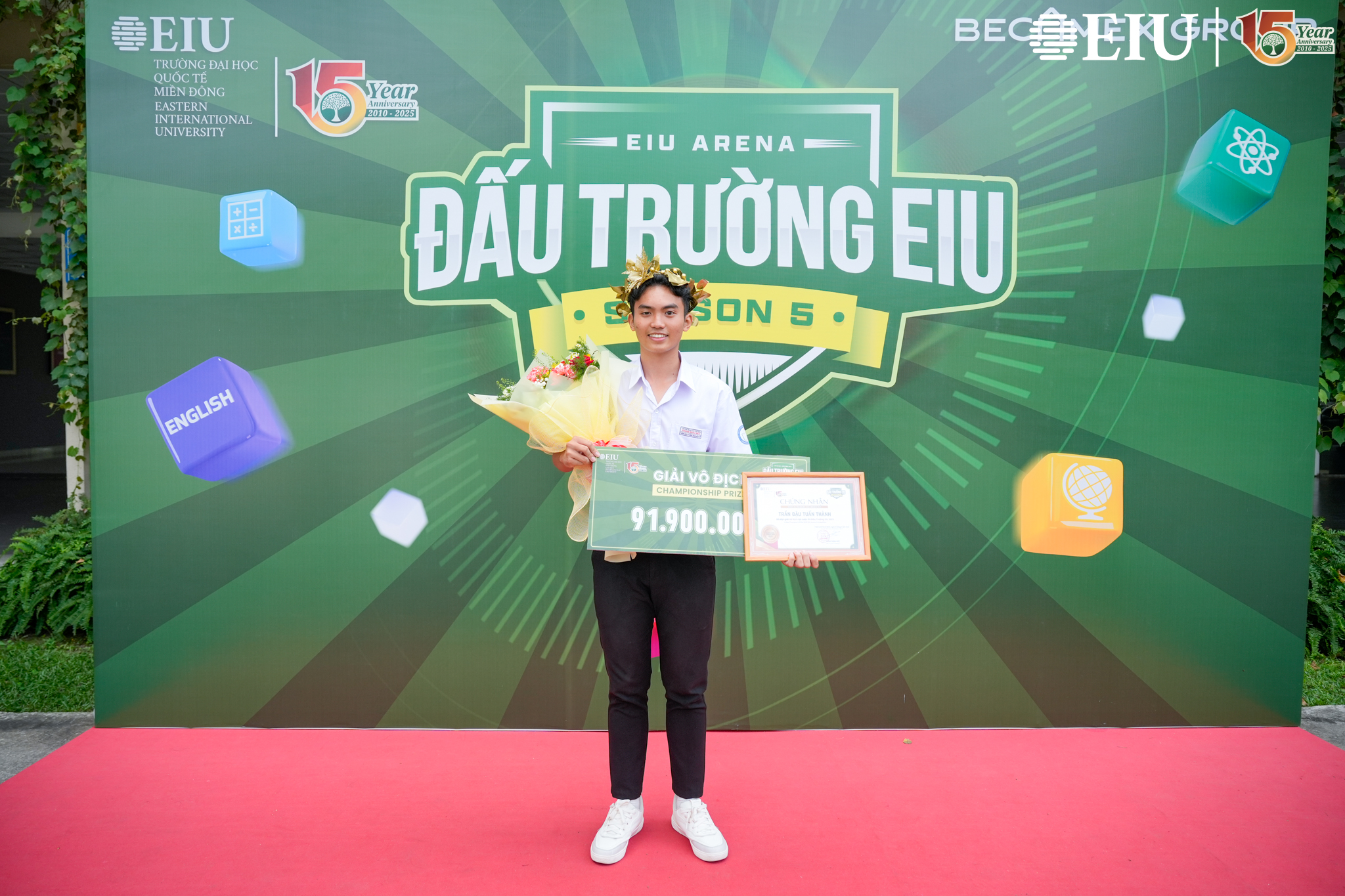 Vượt qua hàng nghìn thí sinh đến từ nhiều trường THPT trên cả nước, em Trần Đậu Tuấn Thành – Học sinh Trường THPT Trịnh Hoài Đức (Tp. Hồ Chí Minh) đã xuất sắc đăng quang Quán quân Cuộc thi “Đấu trường EIU” mùa 5, qua đó nhận phần thưởng tiền mặt trị giá 91,900,000 triệu đồng và vòng Nguyệt quế.