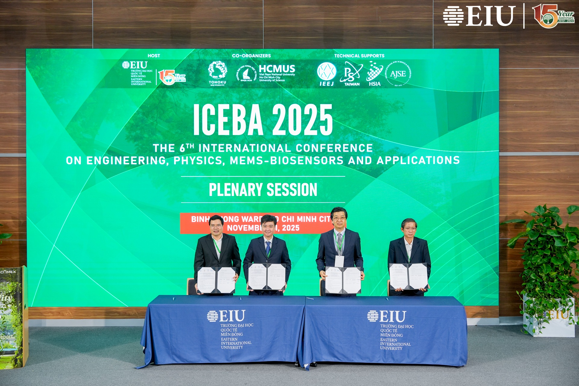 Ngày 11/11, Trường Đại học Quốc tế Miền Đông (EIU) phối hợp cùng Trường Đại học Khoa học Tự nhiên, ĐHQG TP.HCM và Đại học Tohoku (Nhật Bản) tổ chức khai mạc Hội nghị ICEBA 2025.