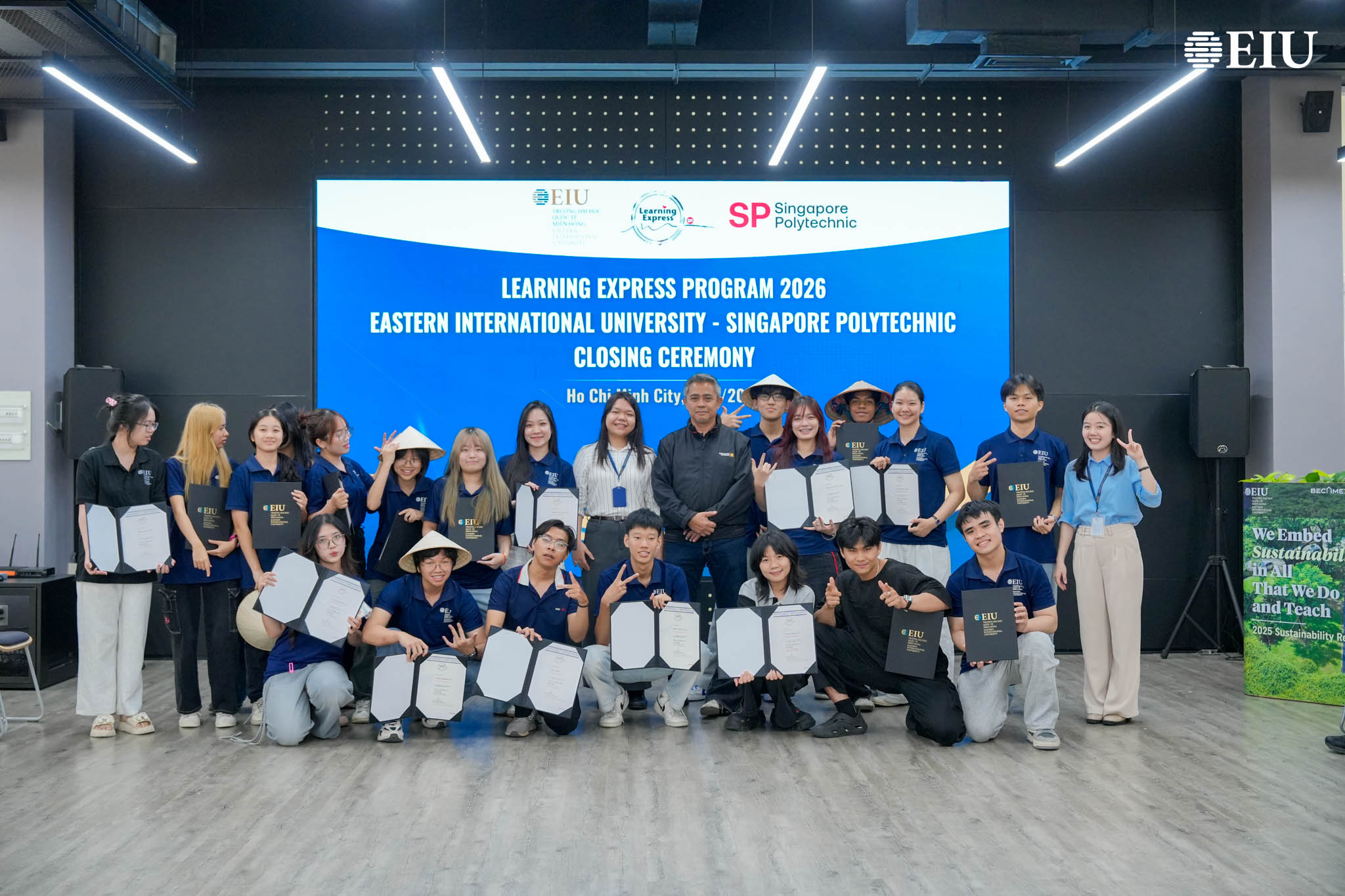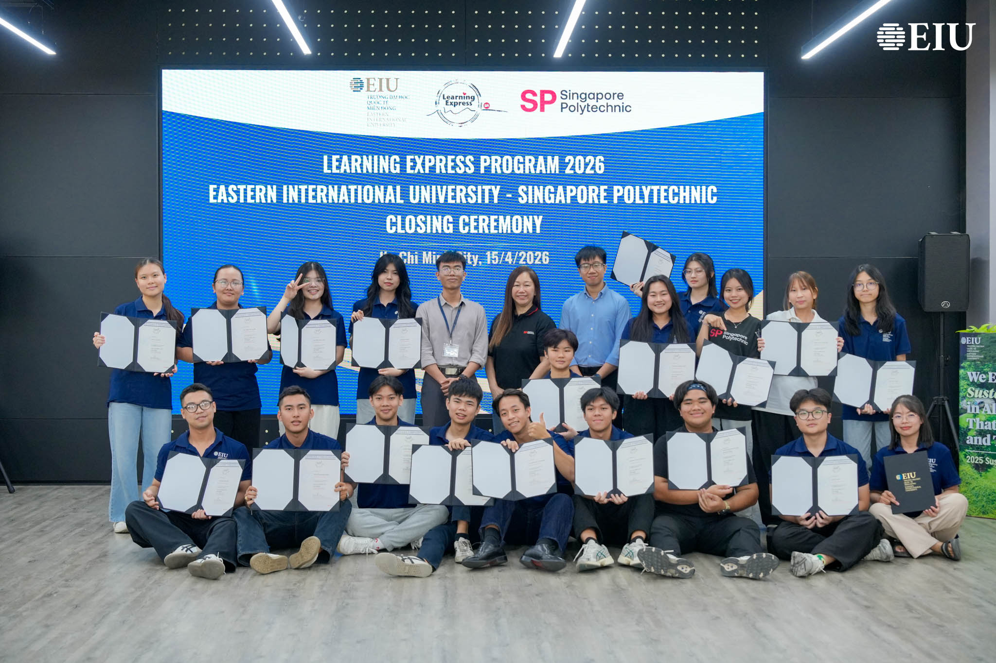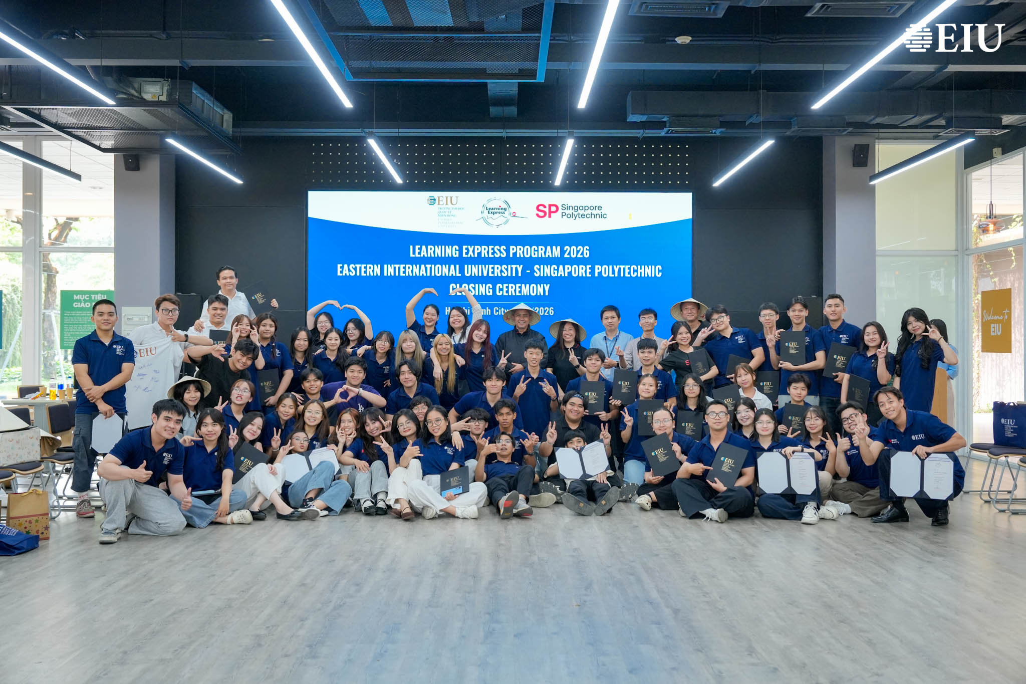Chương trình Learning Express Programme 2026 (LeX 2026) – dự án hợp tác giữa Trường Đại học Quốc tế Miền Đông (EIU) và Singapore Polytechnic (SP) – đã chính thức khép lại bằng chuỗi hoạt động nổi bật, bao gồm tham quan doanh nghiệp, Gallery Walk và Lễ Bế mạc. Đây không chỉ là điểm kết thúc của một hành trình học tập trải nghiệm, mà còn là dấu mốc ghi nhận sự trưởng thành, kết nối và lan tỏa giá trị cộng đồng của các bạn sinh viên.