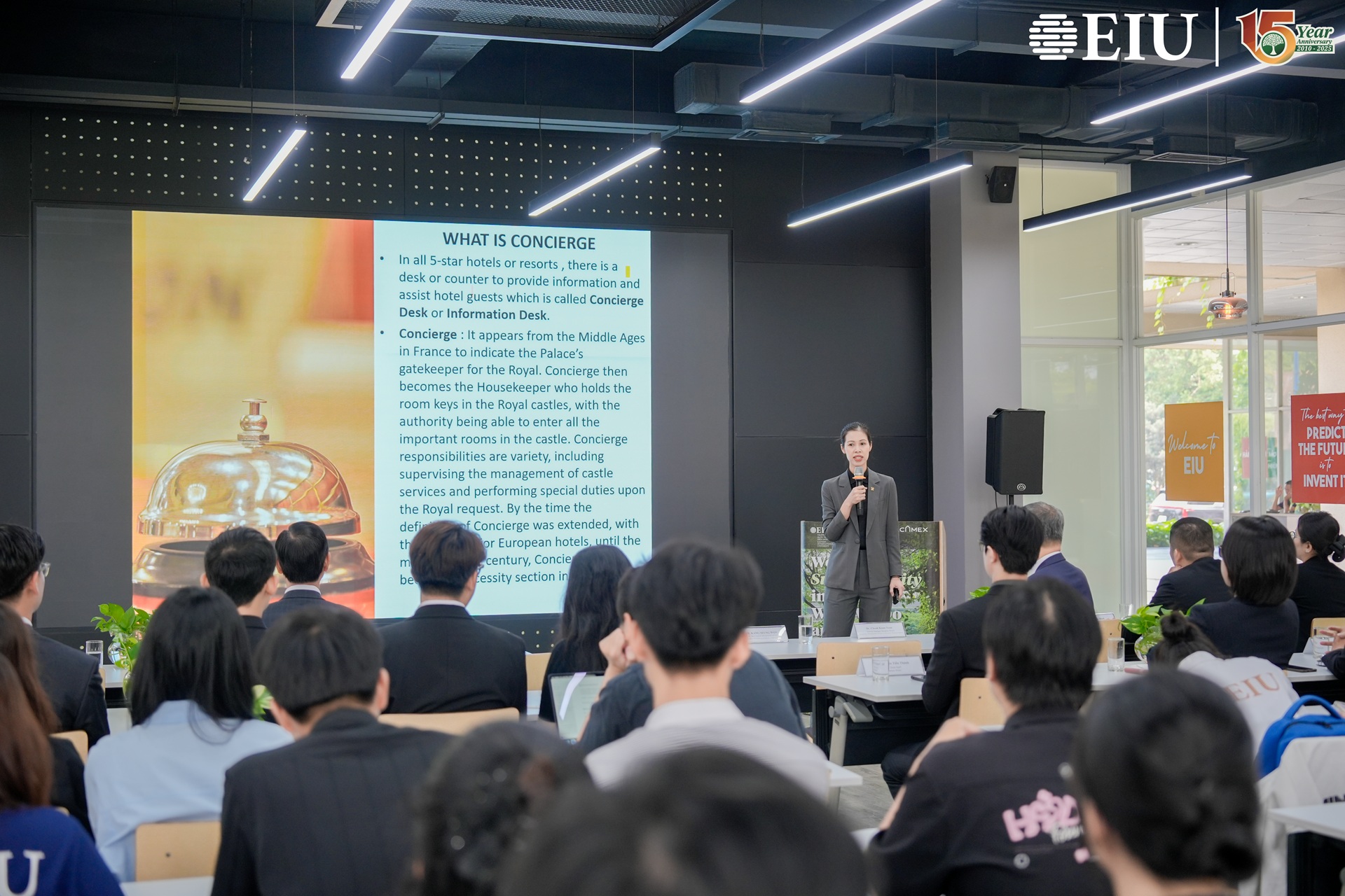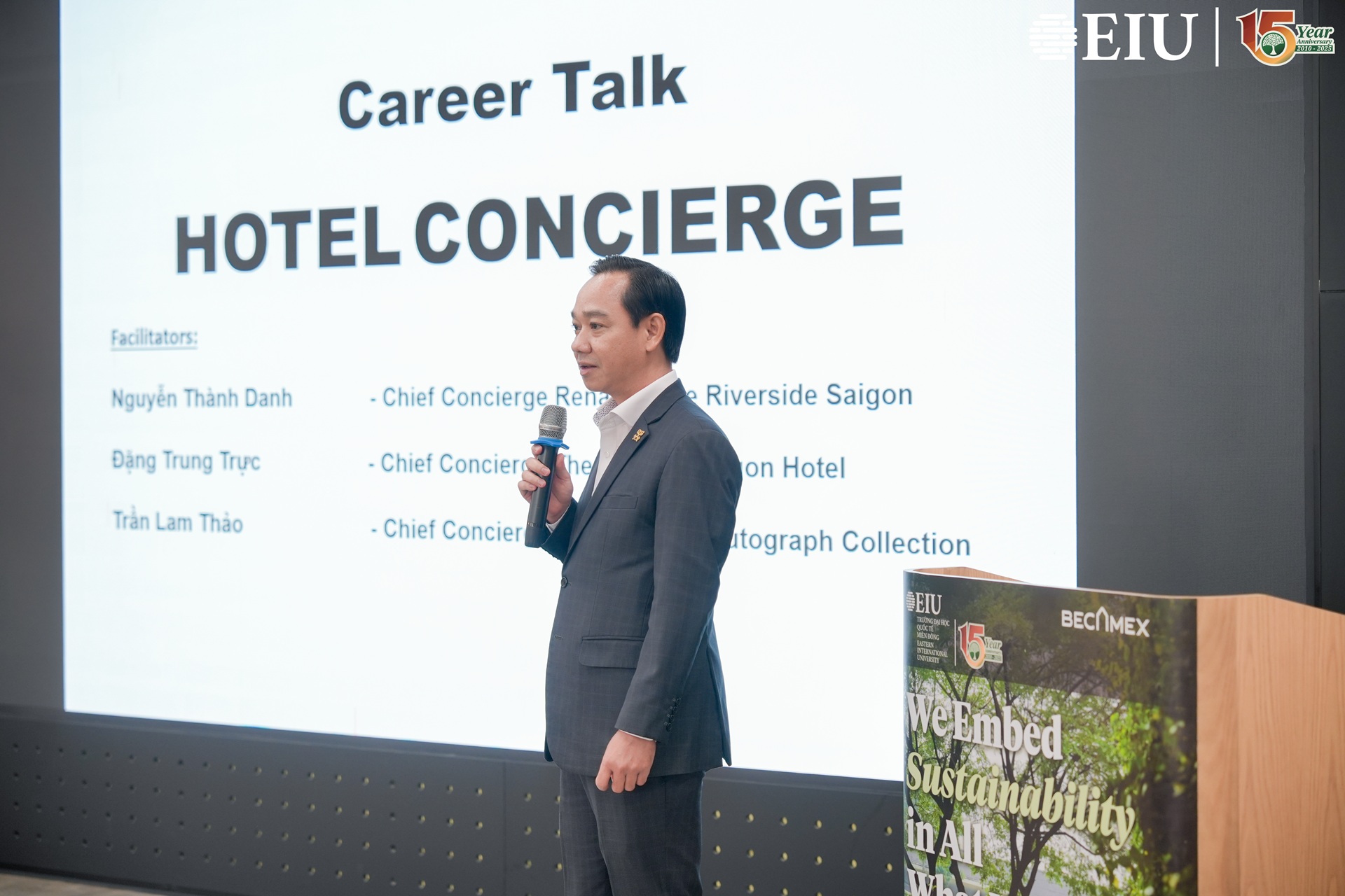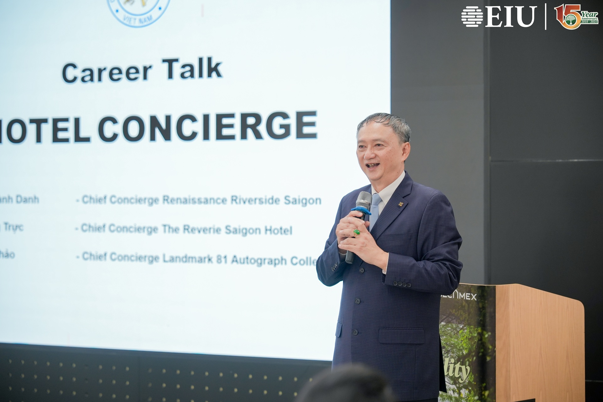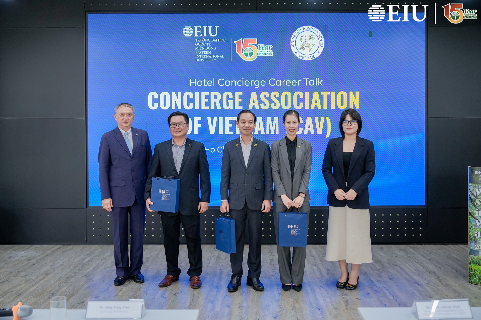 Ngày 22/10, Trường Đại học Quốc tế Miền Đông (EIU) phối hợp cùng Concierge Association of Vietnam (CAV) tổ chức chương trình “Career Talk – Hotel Concierge” dành cho sinh viên Khoa Quản trị kinh doanh, đặc biệt là sinh viên thuộc chuyên ngành Quản trị nhà hàng khách sạn.