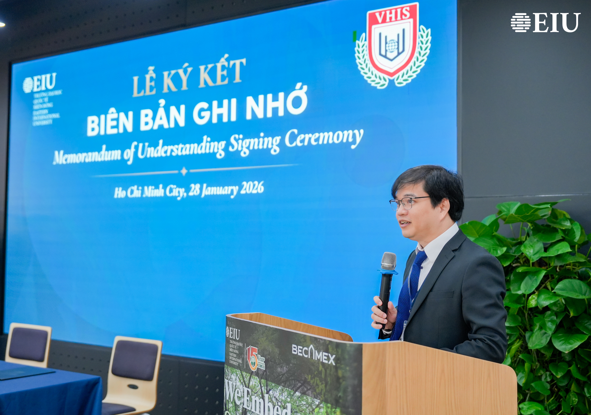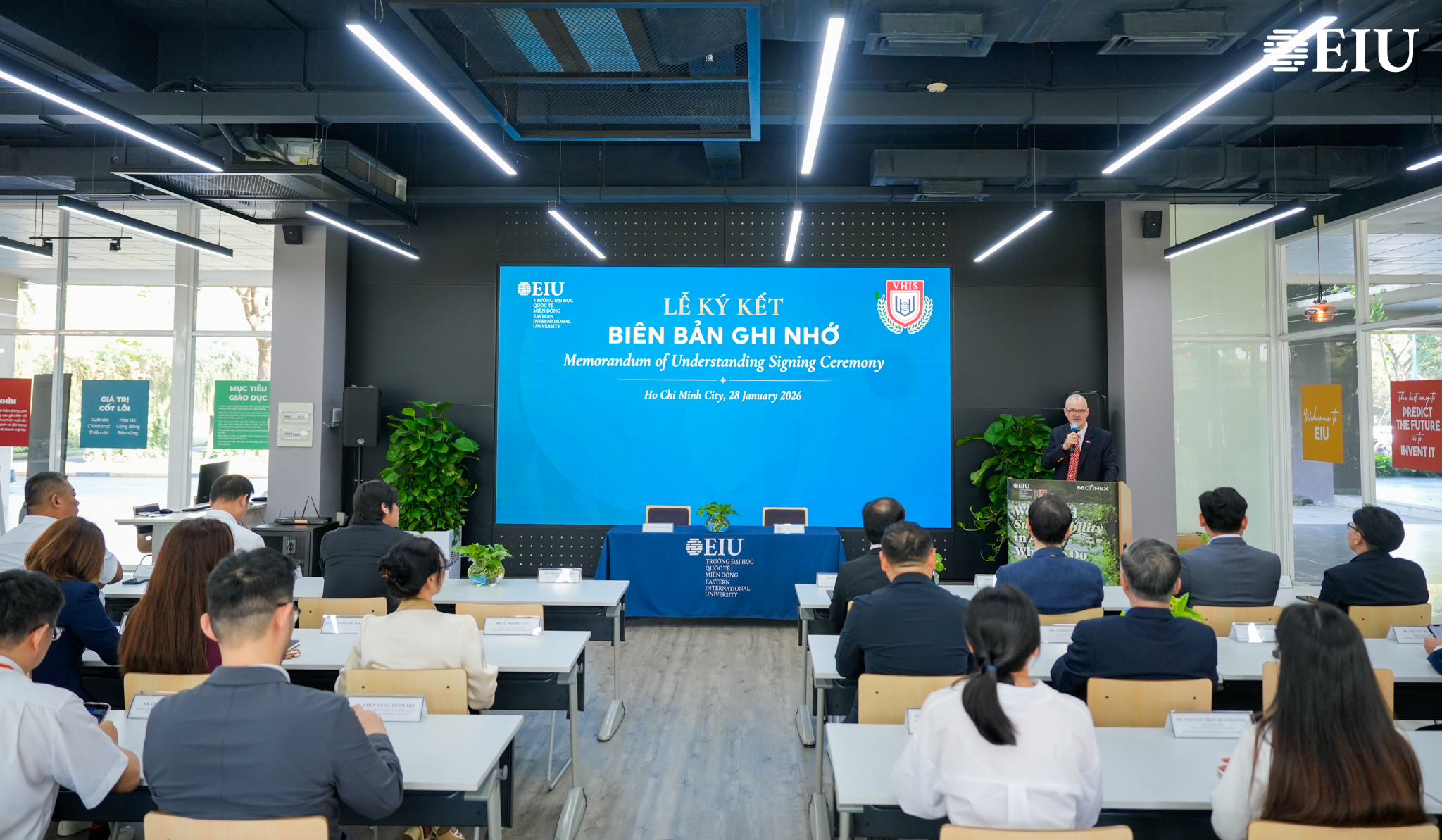 Ngày 28/01, Trường Đại học Quốc tế Miền Đông (EIU) đã ký kết Biên bản ghi nhớ hợp tác (MOU) với Trường Quốc tế Việt Hoa (VHIS), qua đó chính thức thiết lập mối quan hệ hợp tác hướng đến mở rộng cơ hội học tập và phát triển toàn diện cho người học.